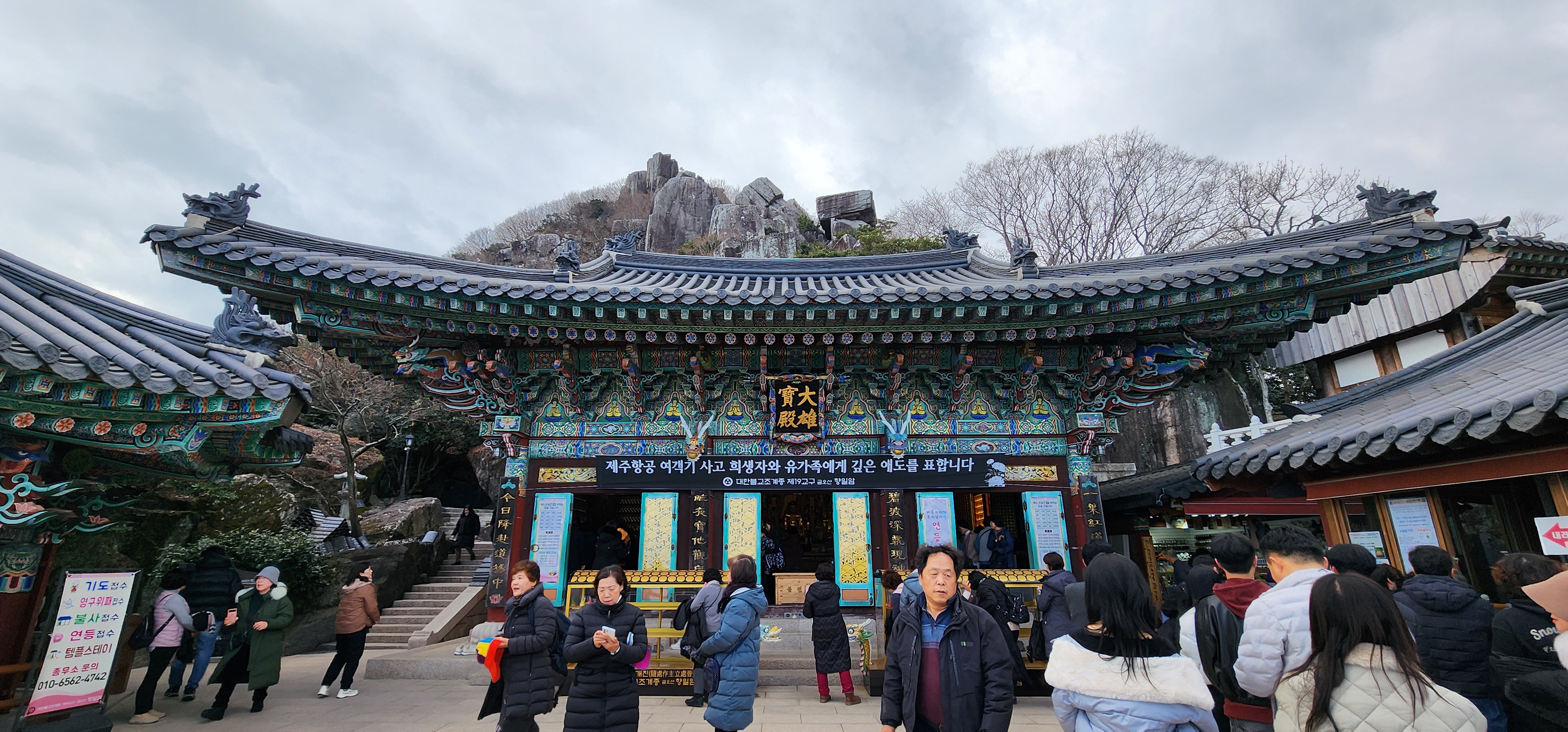 첫번째 간곳이 돌산에 있는 향일암. 깎아지른 벼랑 위에 지어져 일출 명소로 각광을 받는 곳이다. 지형에 맞춰 지어진 절집에 다니는 길목마다 바위틈을 비집고 길을 만들어서 신비함을 자아낸다. 내려오는 길에 눈보라를 만났다. 주변 장사하시는 분들에게 물어보니 십여년만에 처음보는 눈이란다. 하니님이 우리를 환영하시느라 꽃가루를 뿌리며 이벤트를 하신다며 좋아했다.